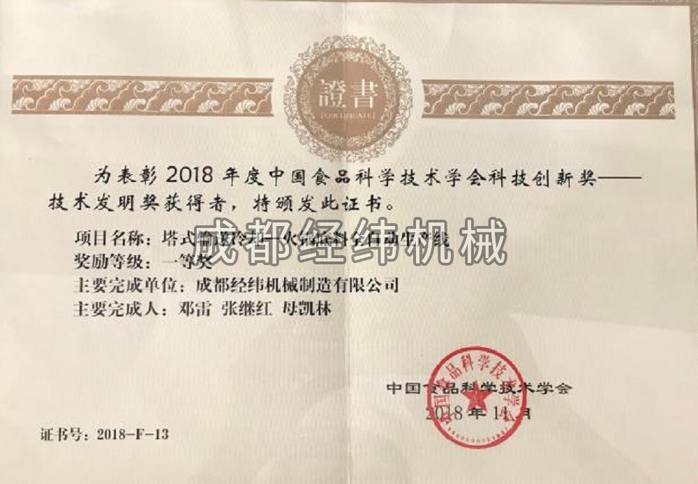 公司已通過了ISO9001質(zhì)量管理體系認證,榮獲“中國食品科學(xué)技術(shù)學(xué)會推薦產(chǎn)品”,被認定為“高新技術(shù)企業(yè)”,歷年來均被評為“納稅大戶”,并擁有多項專利技術(shù)。